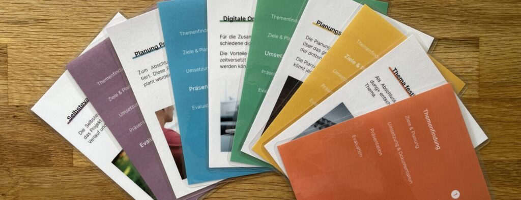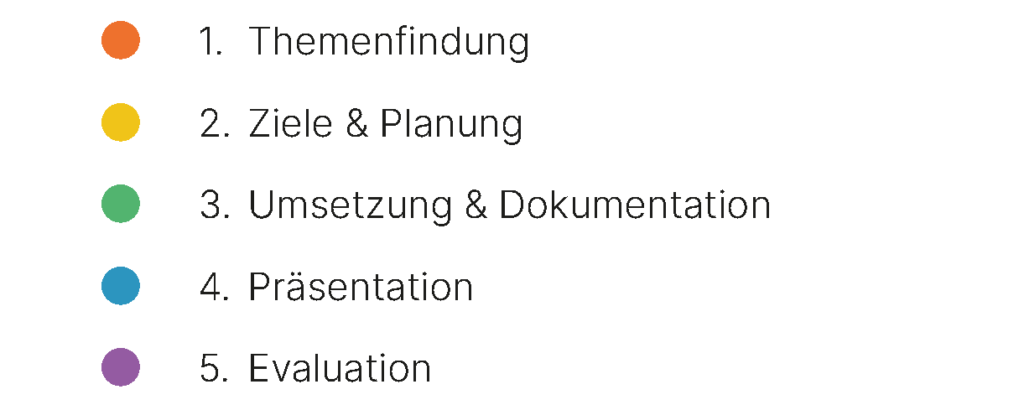 Die Projektbox ist eine fünfschrittige Unterrichtsreihe, welche Schülerinnen und Schüler durch die verschiedenen Phasen einer Projektarbeit begleitet.