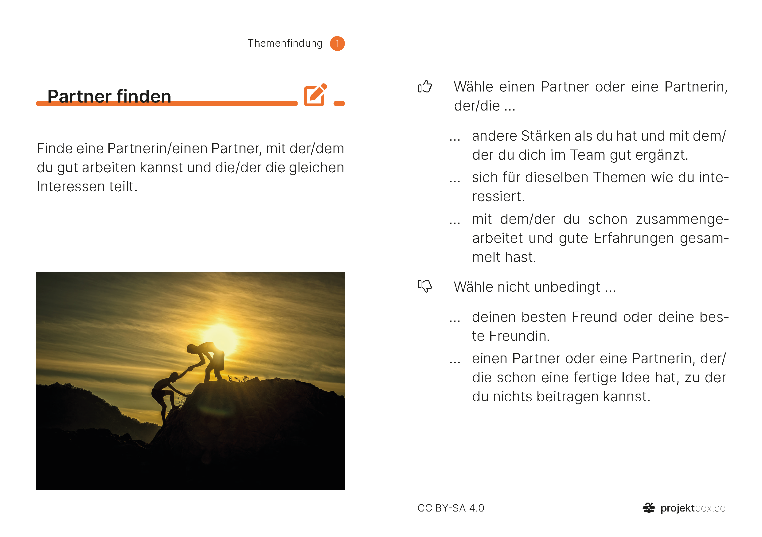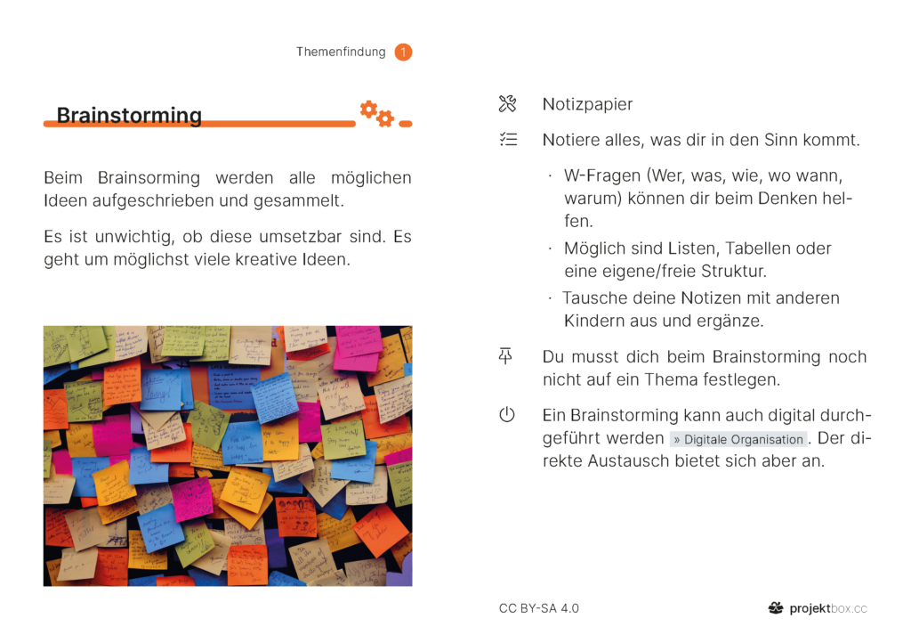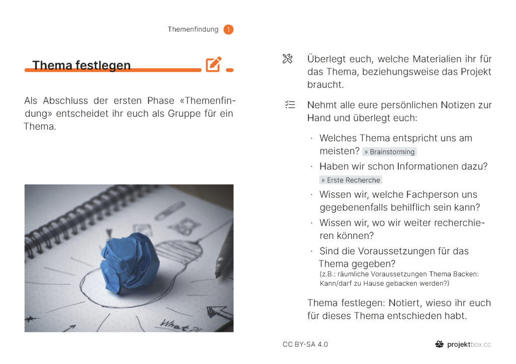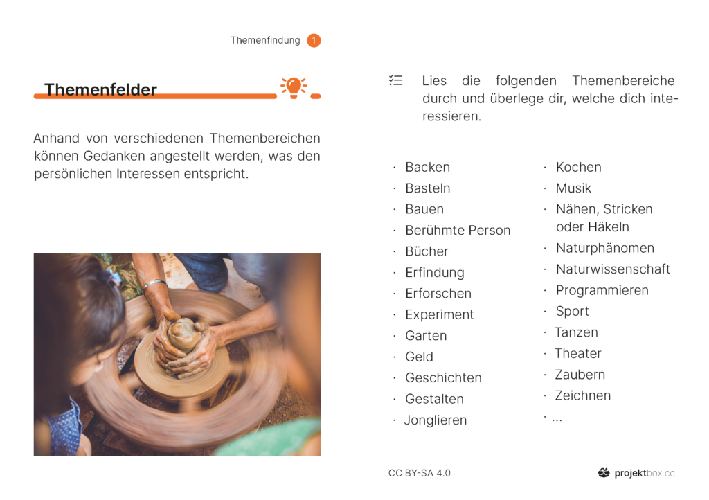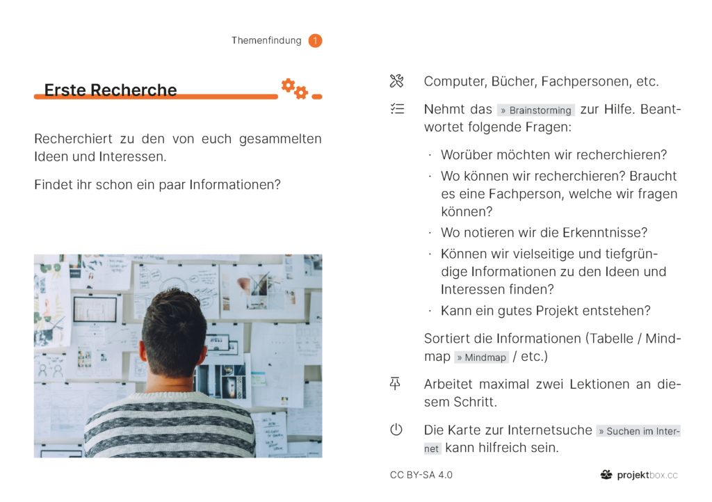 1 Themenfindung Aufträge Persönliche Interessen Partner finden Erwartungen klären Thema festlegen Methoden Brainstorming Erste Recherche Anregungen Stärken & Begabungen Themenfelder